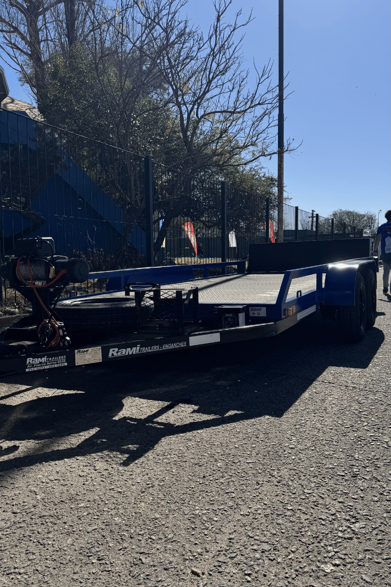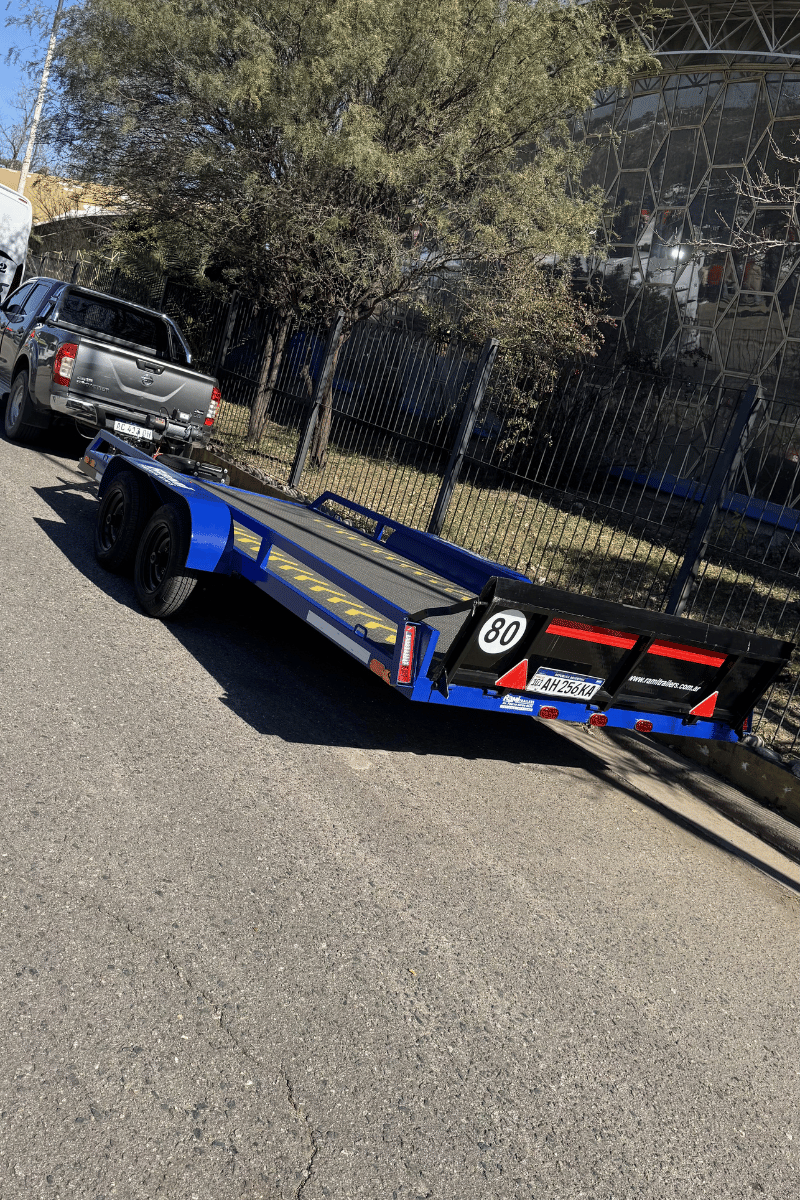 Modelo basculante, su plancha se articula para que la carga del rodado sea más práctica. Pensado para la carga de vehículos como autos y camionetas, también maquinaria liviana. Ofrecemos un modelo para carga de maquinaria pesada. Viene equipado con una torre para colocar un malacate sobre su lanza. Su versión homologada viene con un sistema de frenos electromagnéticos, módulo de control inalámbrico, freno de emergencia y freno de mano. El modelo puede adaptarse a las necesidades del cliente, como en el agregado de accesorios.