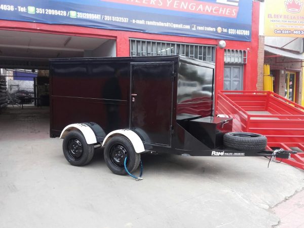 Trailer tipo Albañil Cerrado con chapa plegada estilo bandeja . Techo de chapa y compuertas traseras de abrir con cerradura.